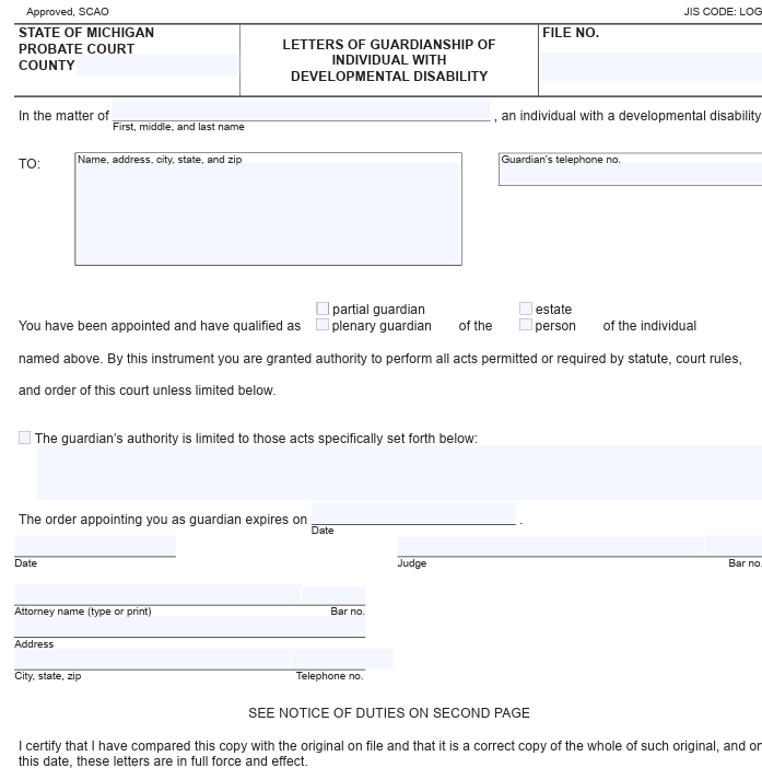You must be able to view the applicable document and verify it has been signed by two witnesses. A note stating the patient has an advanced directive/power of attorney is not sufficient. For any patient with developmental disabilities, a Letter of Guardianship (see example in FAQ section) would also qualify as documentation of a patient advocate, as long as the document is viewable in the medical record.